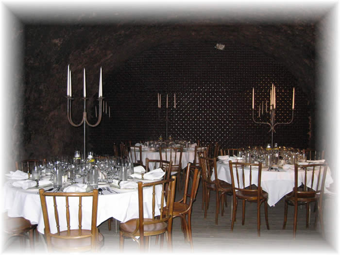 Catered Private Party Schramsberg 7/8/2005 in the caves saute seabass, center cut angus fillet mignon, & portobella mushrooms topped with fresh crab in a ginger sauce |